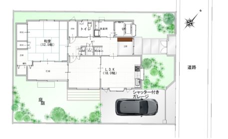 シャッター付きガレージ完備(駐車1台分)。
